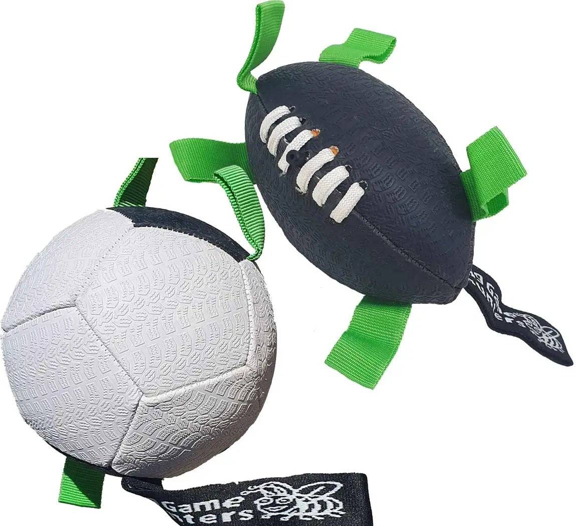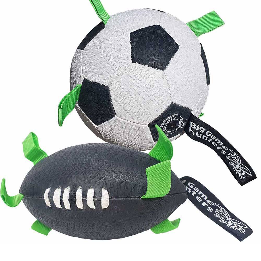 Available in two sizes, these footballs cater to all dog breeds. The small balls are tailored for smaller dogs, while the large options suit bigger breeds. Each ball is equipped with grab tags for easy carrying by your dog, and a strap handle for you to throw with greater control and accuracy.
